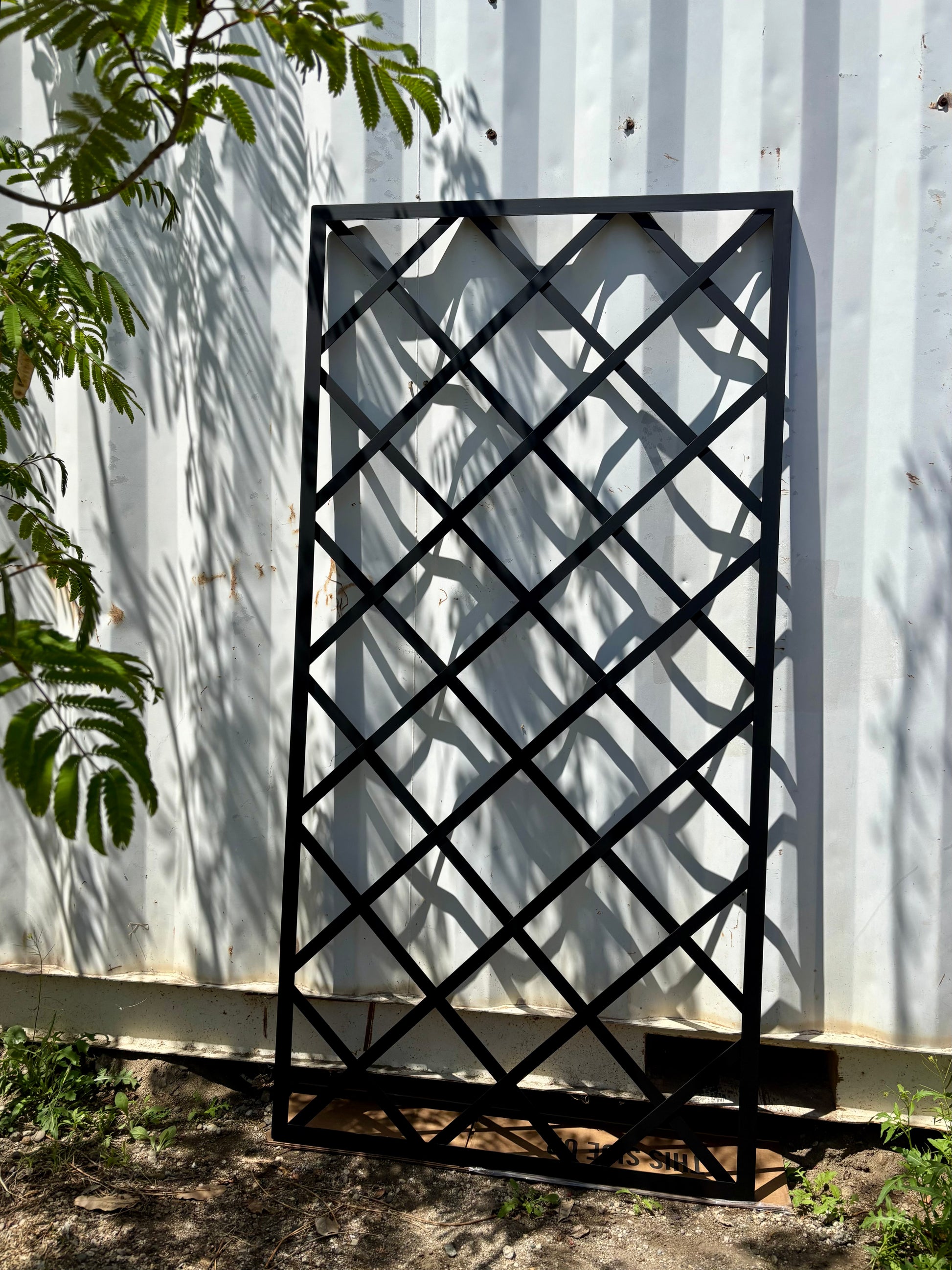 Whether you’re looking to create an eye-catching focal point or just need a solid frame to help your plants grow, Let our bold diamond grid garden trellis guide your outdoor life and allow your plants to grow, bloom and blossom adding natural green beauty to your outdoor space. Thick 1" solid flat bar creates a bolt diamond pattern that pops and adds structure to any space. Hand built to your specifications out of 100% solid metal here in the in Los Angeles Ca. Available in any height and width so you can find one that fits your landscape perfectly. Pick from multiple stunning finishes all powder coated to ensure your architectural metal diamond trellis can withstand harsh outdoor elements and support your garden for years to come. Easy to stake in dirt or cement and to add structure and functionality to any indoor or outdoor space