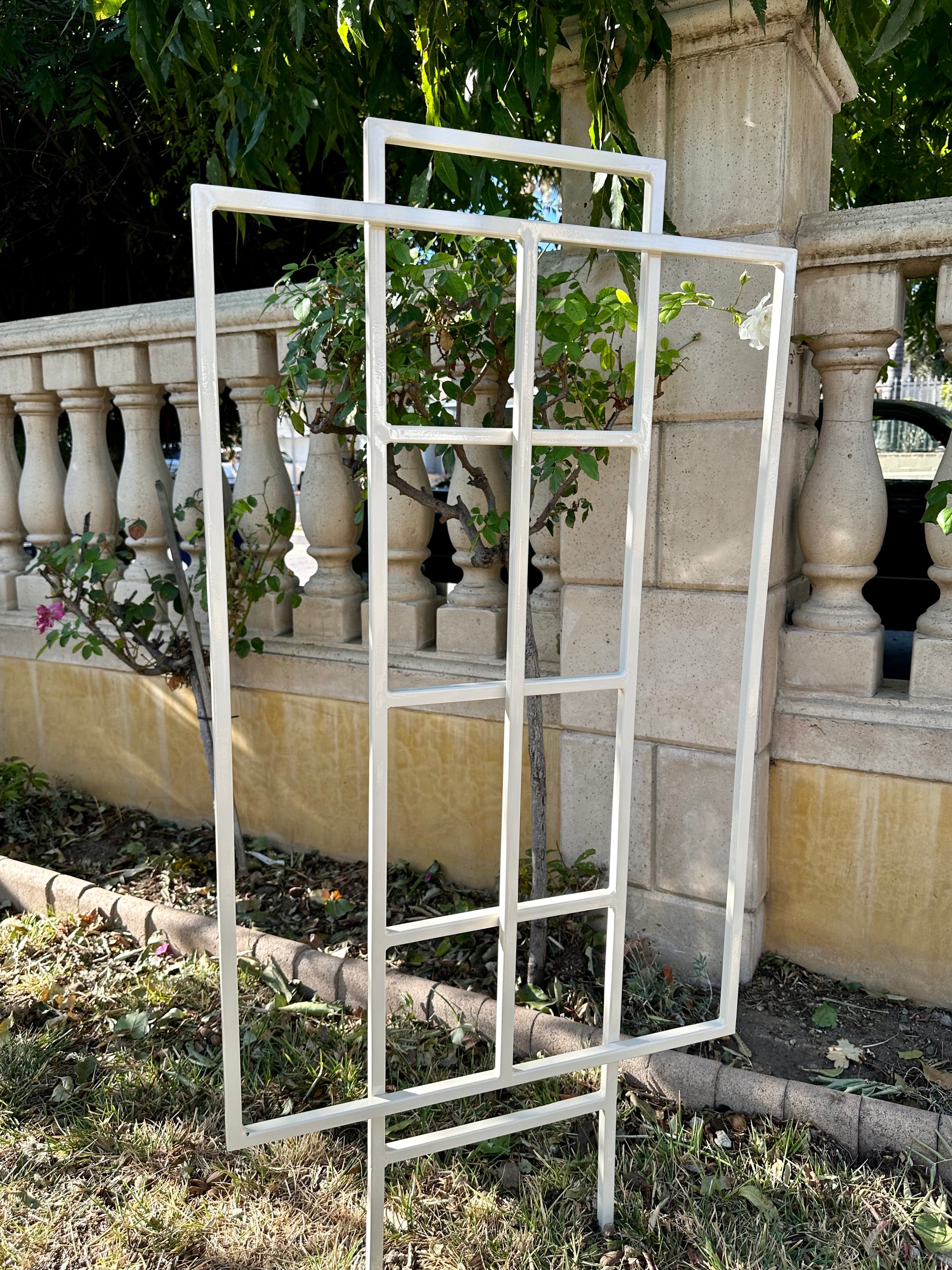 Dimensions: Available in a 3.5' height by 2' Width with an additional 1' stakes. Don’t see the size or finish you’d like? Request a custom size or finish to ensure it fits your space perfectly, just send us a quick message our live chat for quick help.
