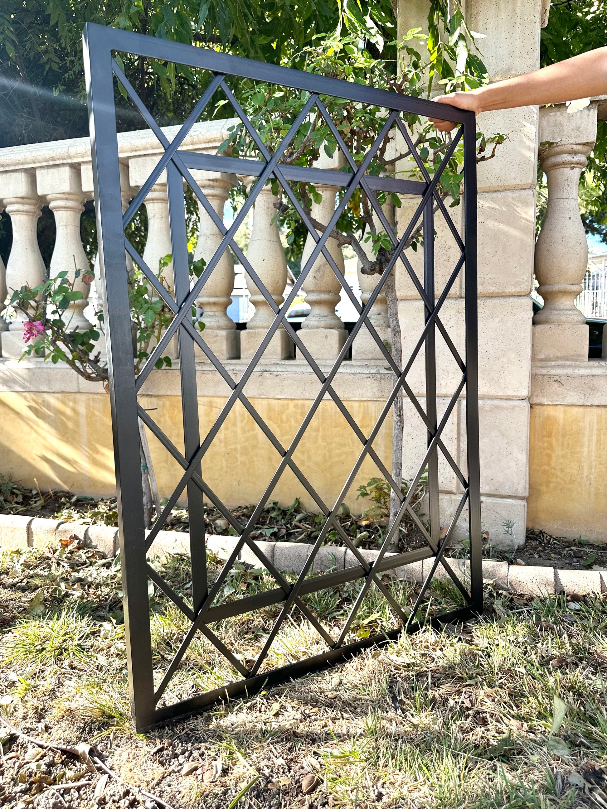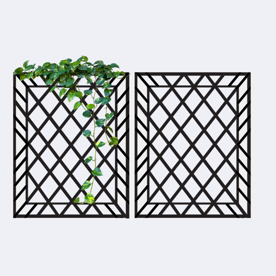 Whether you’re looking to create an eye-catching focal point or just need something to help your plants grow, Let our classic diamond grid trellis guide your outdoor life and allow your plants to grow, bloom and blossom adding natural green beauty to your space. Hand built to your specifications here in the in the USA. Available in various heights and widths so you can find one that fits your garden and landscape perfectly. Pick from multiple stunning finishes all powder coated to ensure it can withstand hard outdoor elements and support your growing garden years to come. Easy installation that takes no more than 45 minutes. Easy to mound and to add beauty and functionality to any indoor or outdoor space