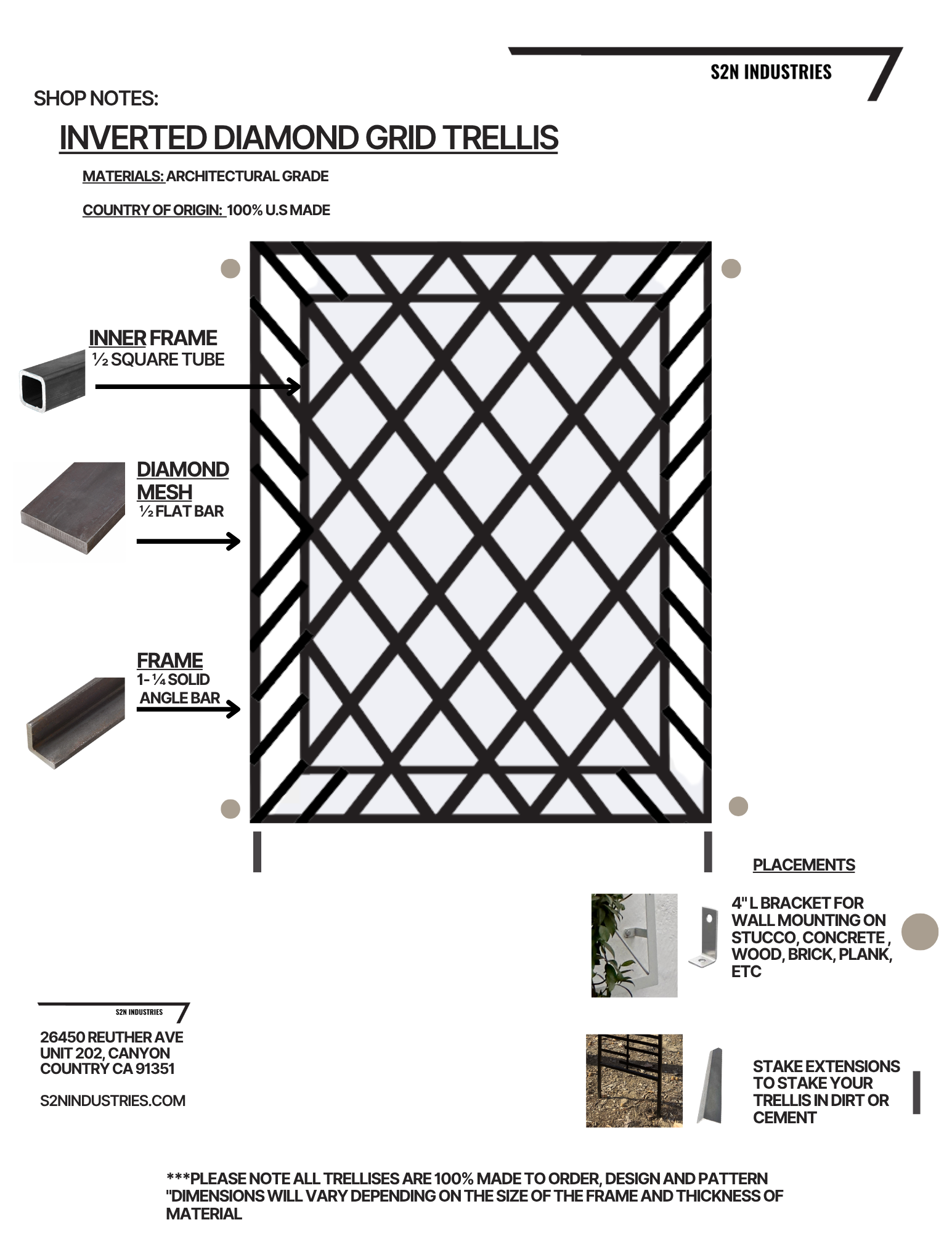 American Built: From the sketches to the final weld, your trellis is hand built in Los Angeles, California and made to order using only solid material to ensure no water or harmful elements can penetrate the structure.