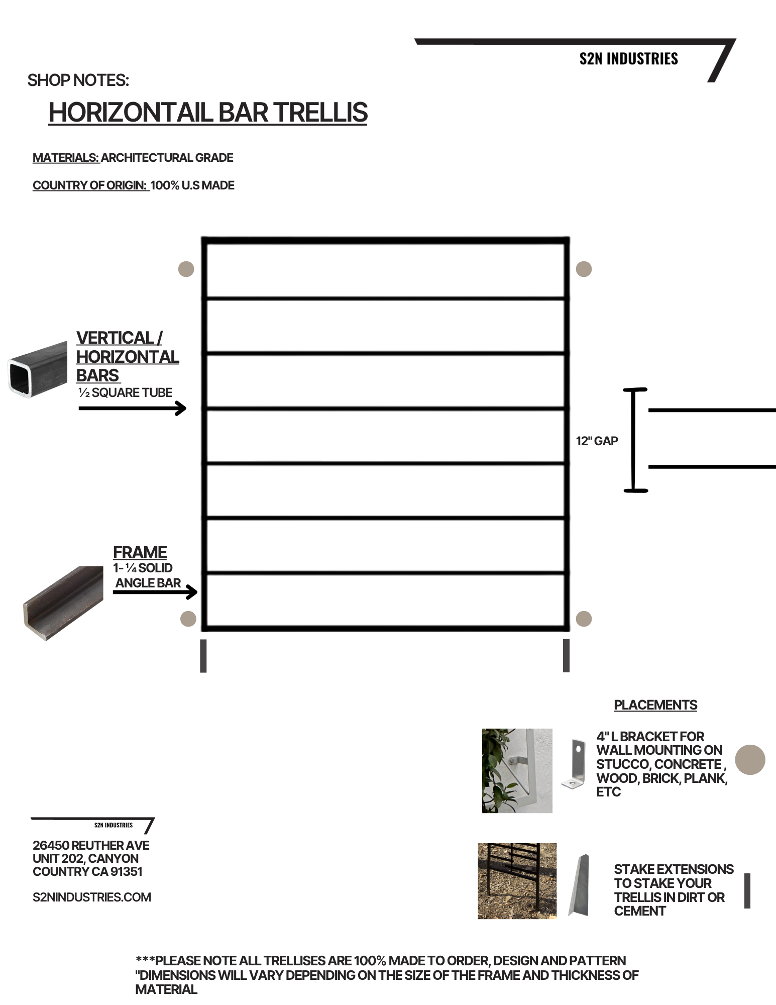 American Built: From sketches to the final weld, your trellis is hand built in Los Angeles, California and made to order using durable 1-1/4 angle bar to build a strong and durable frame that can support your growing garden for years to come