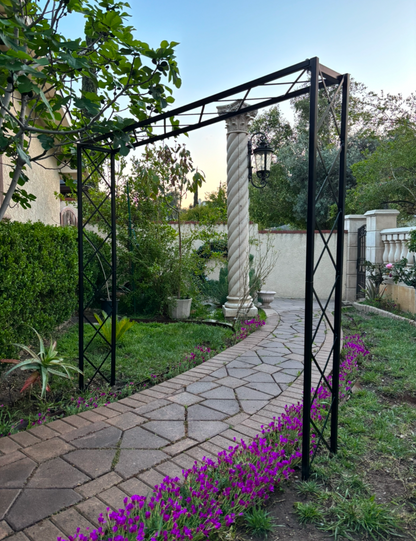 Set the perfect entrance piece for your guests to walk under and step into a stunning garden oasis. This arbor is ideal for warming up any outdoor space and breaking up flat areas by creating a more dynamic and visually appealing landscape. This Diamond Grid Arbor creates the perfect structure for crafting grand entranceways, resort-like garden pathways, or simply adding a lush canopy to any outdoor seating area with your favorite climbing plants, such as roses or fragrant clematis. Hand-built in Los Angeles from strong U.S. steel, it is designed to support a growing garden for years to come with little to no maintenance. Easy 45-minute installation—simply stake it into dirt or cement, or anchor it to an existing foundation.